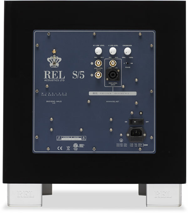 Beyond the proprietary drivers, the performance of a REL is determined by their unique input filters and amplifiers. S/5 SHO uses a simple filter-type that is very fast—about 8 milliseconds in group delay– to cross out unwanted higher frequencies to our driver. This speed and the carefully sorted filters allow for seamless blending of REL's with the main speakers. REL's do not include a high pass filter to cross out bass from the main speaker because to do so would generally produce more unwanted effects than the minor benefits such a design confers.